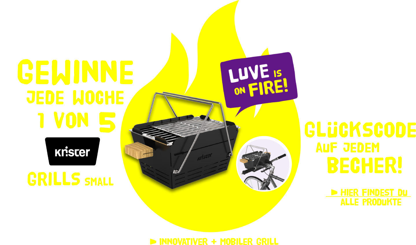 2.2. Unter den teilnehmenden Glückscodes werden wöchentlich 5 Knister Grill Small inklusive Fahrradhalterung verlost, insgesamt handelt es sich um 60 Stück.
